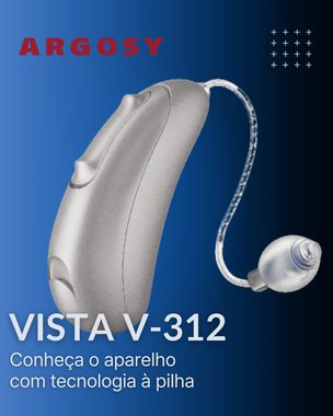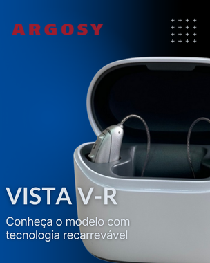 O menor aparelho auditivo RIC da Argosy, com bateria tradicional e conectividade direta via Bluetooth.